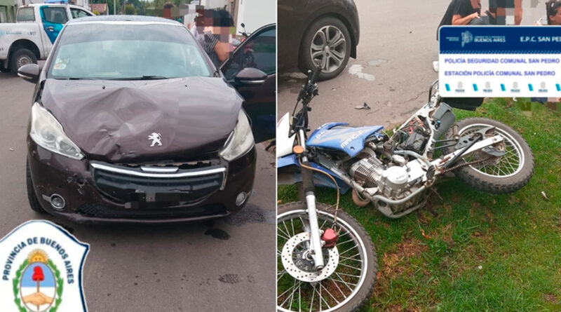 Ayer por la tarde, personal policial intervino en un accidente de tránsito ocurrido en la intersección de Benito Urraco y Almafuerte. Por causas que se investigan, una motocicleta de 150 cc conducida por un hombre de 35 años colisionó con un automóvil guiado por una mujer de 58 años.