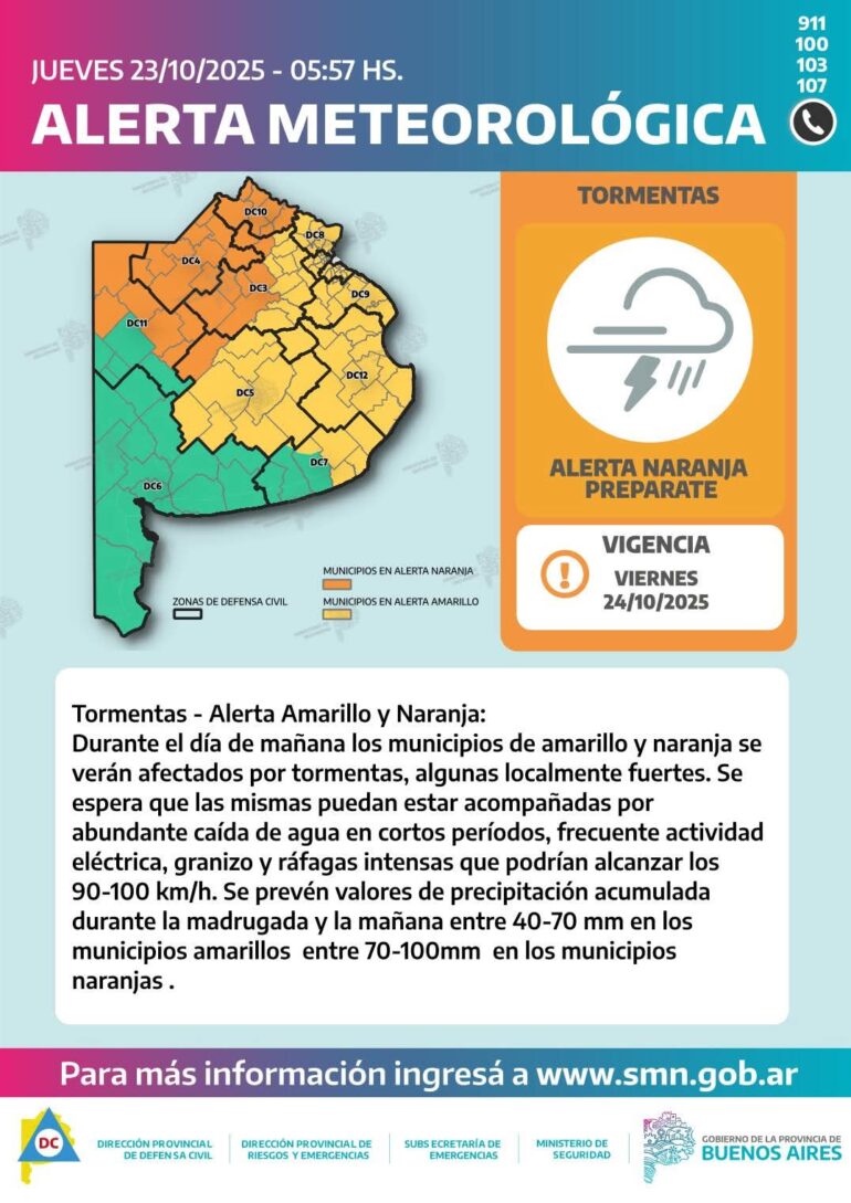 El Servicio Meteorológico Nacional emitió una alerta naranja por tormentas para San Pedro y la región, que comenzará a regir desde las últimas horas de este jueves. Se prevé la llegada de tormentas de variada intensidad, que se intensificarán durante la noche y alcanzarán su máximo desarrollo en la mañana del viernes.