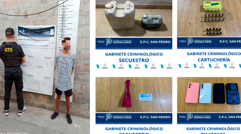 Durante el procedimiento, se procedió al secuestro de cartuchería intacta, elementos de combustión, un teléfono celular buscado, efectos personales y documentación de interés para la causa. Además, se efectivizó la detención del morador, un hombre de 24 años, quien contaba con una orden judicial y se encuentra imputado por los delitos de desobediencia y amenazas reiteradas. El detenido permanece alojado en sede policial a disposición de la fiscalía local.