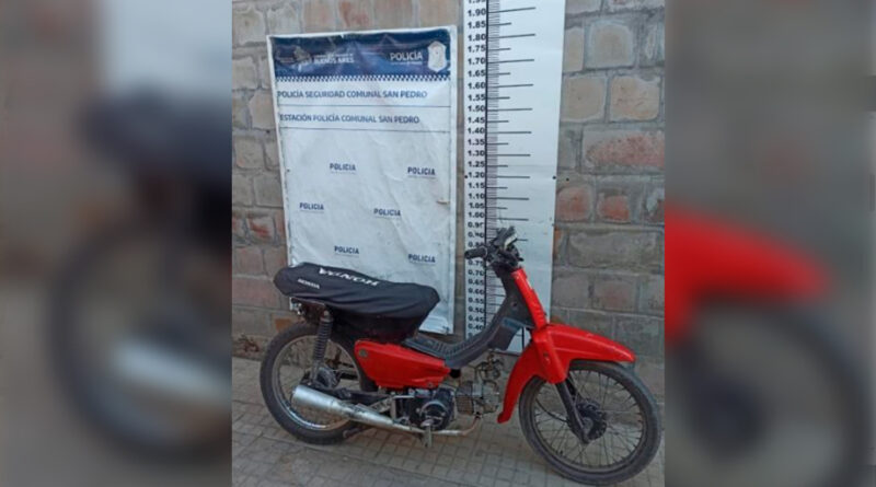 Este martes, personal de la Comisaría de San Pedro aprehendió a un joven de 15 años que circulaba en una motocicleta 110 cc con la numeración del motor suprimida, en la intersección de Basavilbaso y Sargento Cabral.