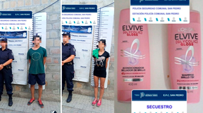 En la tarde de ayer, personal del Grupo de Gabinete Criminológico de la Comisaría de San Pedro detuvo a dos personas en las inmediaciones de Honorio Pueyrredón y Pellegrini tras un rápido accionar. Se trata de una mujer de 31 años y un hombre de 22, quienes habían sustraído mercadería y comestibles de un comercio ubicado en Honorio Pueyrredón al 150, simulando ser clientes.