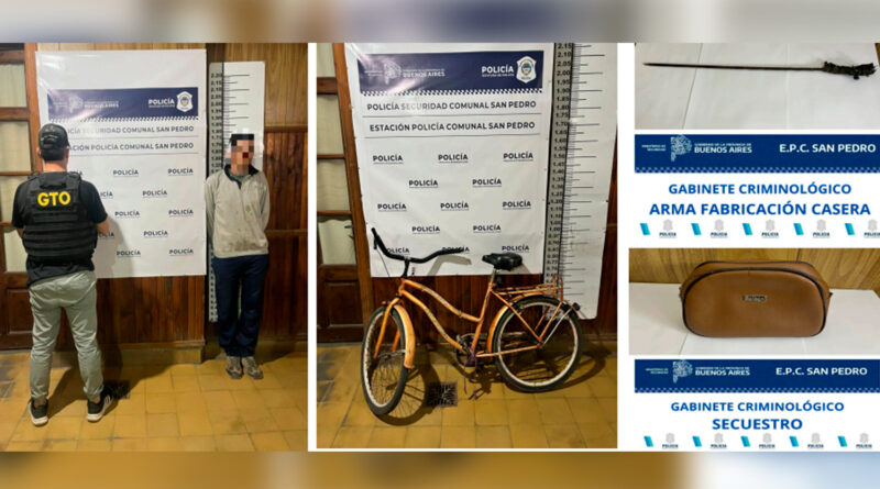 En la jornada de ayer, un rápido operativo del Grupo Táctico Operativo (GTO) de la Comisaría San Pedro permitió la aprehensión de un delincuente de 42 años, conocido en el ámbito delictivo local. El hecho ocurrió en la intersección de calle Aulí y avenida 11 de Septiembre, donde el sujeto intentaba escapar tras cometer un robo.