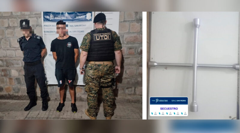 En la noche de ayer, personal policial detuvo a un hombre de 22 años en la calle Caroni al 600, tras un intento de hurto en la vía pública. El individuo había intentado sustraer un neumático de un automóvil estacionado en la intersección de Uruguay y Novillo.