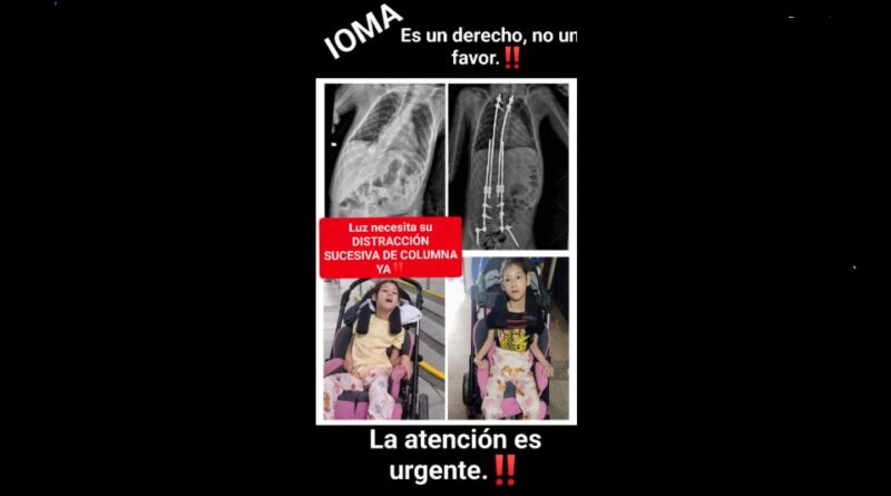 Según explicó, en 2024 Luz debió ser intervenida de urgencia por una escoliosis de grado 90, que comenzaba a comprometer sus órganos. “Llegar a esa cirugía fue una lucha de casi dos años para que IOMA autorice, mientras mi hija sufría día a día las consecuencias de su postura”, expresó. La intervención realizada fue una distracción sucesiva de columna (crecimiento guiado), un tratamiento que requiere ajustes quirúrgicos cada 6 a 8 meses para acompañar el crecimiento hasta la adolescencia. “No es opcional. No es un capricho. Es parte del tratamiento”, remarcó.