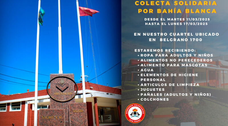 La Asociación de Bomberos Voluntarios de San Pedro lanzó una colecta solidaria para asistir a las personas afectadas por el temporal en Bahía Blanca.
