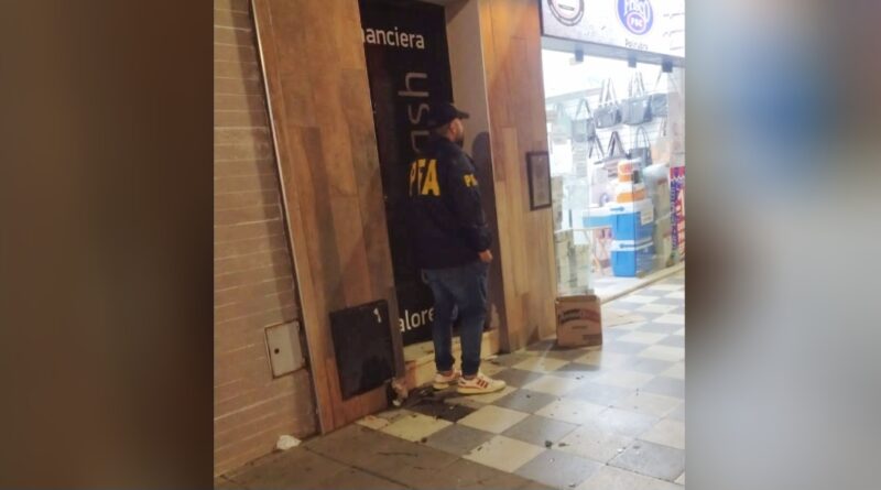 Personal de la Policía Federal lleva a cabo un allanamiento en las oficinas de la financiera Overcash, ubicadas en Mitre al 800 aproximadamente. La intervención está relacionada con el caso «Rainbowex».