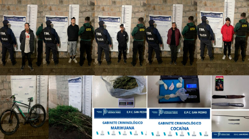 El procedimiento se llevó a cabo en una vivienda de calle Gomila, donde los uniformados irrumpieron con autorización del Juzgado de Garantías de San Nicolás. En el lugar se encontraron: tres cuchillos usados en el robo, una bicicleta mountain bike marca Jordan (clave en la causa) y una peligrosa combinación de drogas: una planta de marihuana, una bolsa con 2,450 kg de marihuana procesada y cinco bochitas de cocaína con un peso total de 2,58 gramos. Los cinco detenidos, todos mayores de edad, quedaron a disposición de la UFI N°11 y serán indagados en las próximas horas.