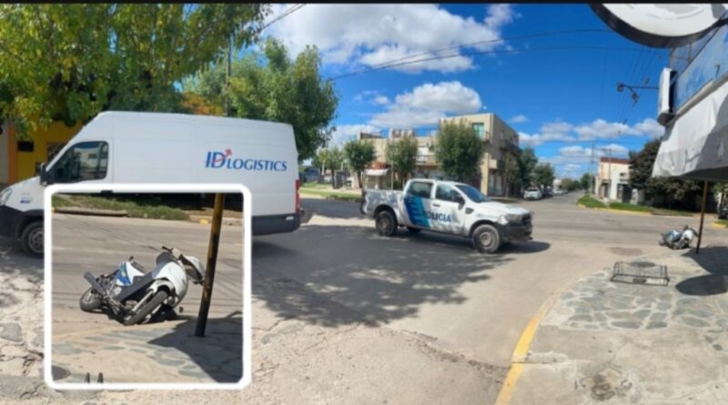 En la intersección de avenida Sarmiento y Libertad, personal policial intervino este jueves tras un accidente de tránsito protagonizado por una motocicleta y un vehículo utilitario. Por causas que aún se intentan establecer, una moto Corven Energy de color blanca, conducida por una mujer de 25 años, colisionó con una camioneta Iveco Furgón, también blanca, guiada por un hombre de 66.