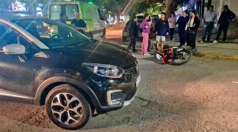 Choque entre una moto y un auto: un conductor sufrió lesiones leves