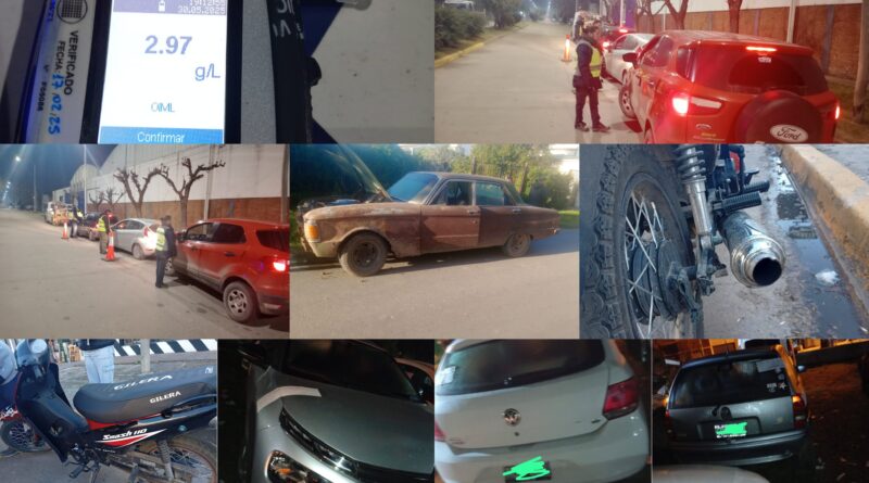 Como resultado, fueron retenidos siete vehículos: cuatro por alcoholemia positiva, tres por falta de documentación y una motocicleta adicional por tener un caño de escape deficiente.