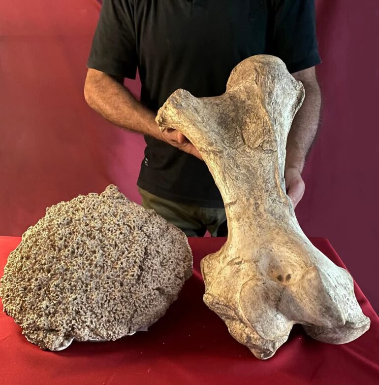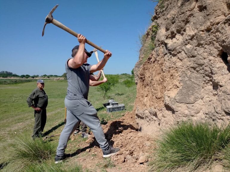 “Estamos muy contentos con el hallazgo de este animal. Su estado de conservación es impresionante, incluso presenta partes del cuerpo articuladas en posición de vida. Un brazo, fémur, tibia y fíbula, huesos de los pies, el casquete de la cabeza, etc. Si bien aún estamos en pleno proceso de excavación y acondicionamiento del material, creemos que este ejemplar podría ser el de mayor número de piezas para esa antigüedad”, explica José Luis Aguilar, desde la dirección del Museo Paleontológico de San Pedro y uno de los descubridores.