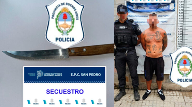 Durante la aprehensión, se le secuestró un arma blanca que portaba. La situación fue puesta en conocimiento del Juzgado de Paz local, que interviene en el caso.