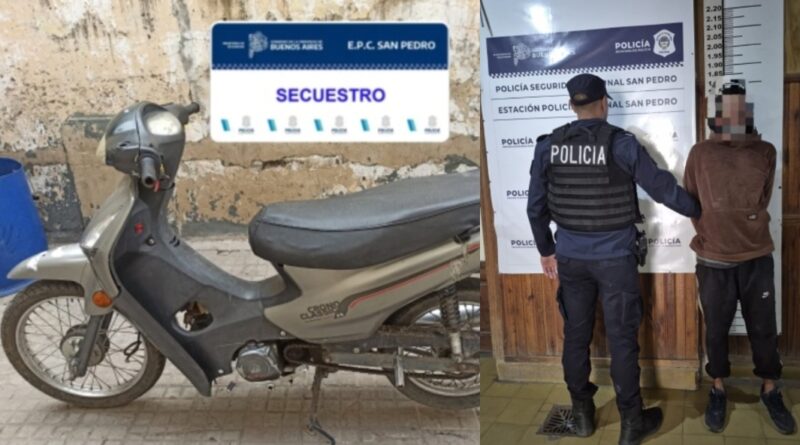 Según se informó, el rodado había sido robado tras forzar el portón de una vivienda ubicada en calle Balcarce al 1000, propiedad de una mujer de 34 años. El aprehendido, reconocido en el ámbito delictivo, fue trasladado a la dependencia policial imputado por robo agravado por efracción, quedando a disposición de la UFI N° 11 de San Pedro.