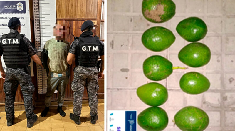 Según informaron, el sujeto había ingresado momentos antes a una finca tras saltar un tapial, propiedad de un vecino de 33 años, de donde sustrajo paltas. Intervino la fiscalía local, que dispuso la notificación de la causa y que el imputado permanezca alojado en el sector de calabozos.