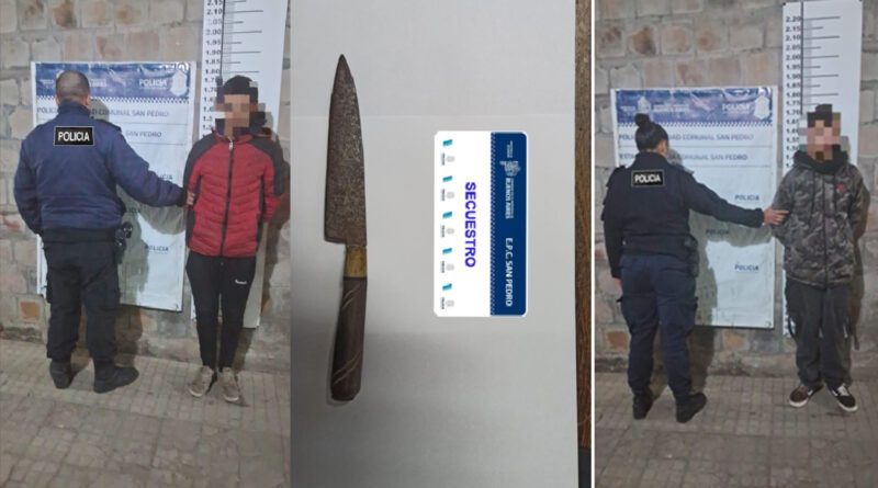 Durante la madrugada de ayer, personal policial aprehendió a un hombre de 24 años en Sargento Selada y Auli, luego de observar que portaba un arma blanca a la vista en la vía pública. Fue trasladado a la Dependencia policial por infracción a la Ley 8031/73, con intervención del Juzgado de Paz San Pedro y la UFI N° 11.