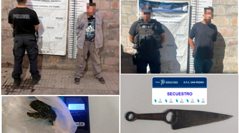Dos delincuentes oriundos del Gran Buenos Aires, aprehendidos por portación de arma blanca y tenencia de estupefacientes