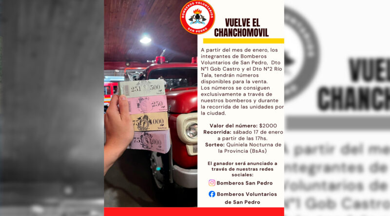 Los Bomberos Voluntarios de San Pedro anunciaron el regreso de una propuesta solidaria que ya se convirtió en un clásico en la ciudad. A través de una publicación oficial informaron que, desde este mes de enero, volverán a realizar la venta de números de rifa, con el objetivo de recaudar fondos para la institución.