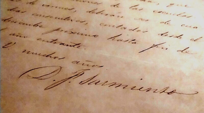 La pieza, aunque amarillenta, se conserva en perfecto estado y su contenido es perfectamente legible. La firma de quien la escribió, también. Nada menos que Don Domingo Faustino Sarmiento, el llamado “Padre del aula” o “Maestro de América”, por su histórico rol en la educación argentina.