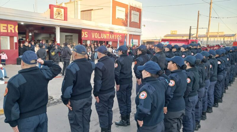 Este lunes por la mañana, frente al cuartel local, se llevó a cabo el acto conmemorativo por el Día del Bombero Voluntario, en homenaje a quienes integran esta destacada institución al servicio de la comunidad. La ceremonia fue encabezada por el presidente de la Asociación de Bomberos Voluntarios, Eduardo Dlapa, y el jefe del Cuerpo Activo, Comandante Mayor Edgardo Epelde, con la participación del Intendente Cecilio Salazar, autoridades locales, representantes de instituciones, escuelas, agrupaciones, veteranos de Malvinas y vecinos.
