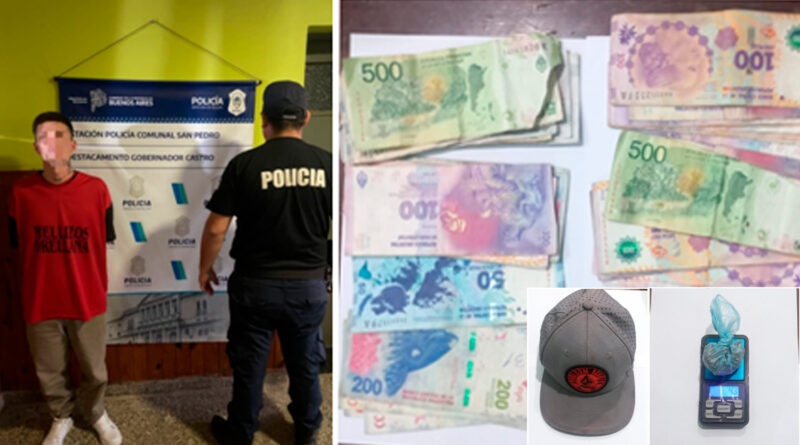La detención se concretó en horas de la tarde de ayer en la vía pública, sobre calle San Martín entre Raffo y Juan Castro, donde fue aprehendido un hombre de 24 años. Durante el procedimiento se secuestró un envoltorio con marihuana con un peso total de 4,3 gramos, una gorra con visera que habría sido utilizada al momento del hecho y dinero en efectivo. Interviene la Fiscalía local, que dispuso que el detenido permanezca alojado en el sector de calabozos a la espera de su primera remisión a sede fiscal.