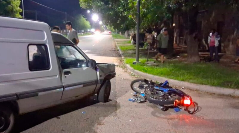 Un grave accidente de tránsito ocurrió en la intersección de La Rioja y Av. Falcón, donde un Renault Furgon Express, conducido por un hombre de 37 años, chocó con una motocicleta Zanella 110cc guiada por un joven de 20 años.