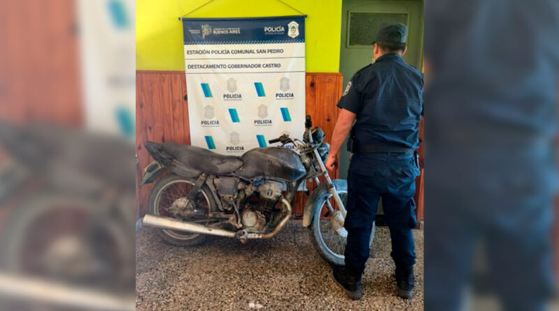 En la jornada de ayer, en el marco de un operativo realizado en la localidad de Gobernador Castro, personal policial procedió al hallazgo y secuestro de un motovehículo que registraba un pedido activo.