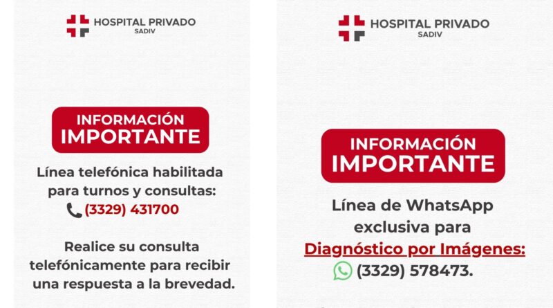 El Hospital Privado SADIV incorporó una línea exclusiva de WhatsApp destinada a la solicitud de turnos para el servicio de Diagnóstico por Imágenes, con el objetivo de agilizar la gestión y ofrecer una atención más rápida y cómoda a los pacientes.