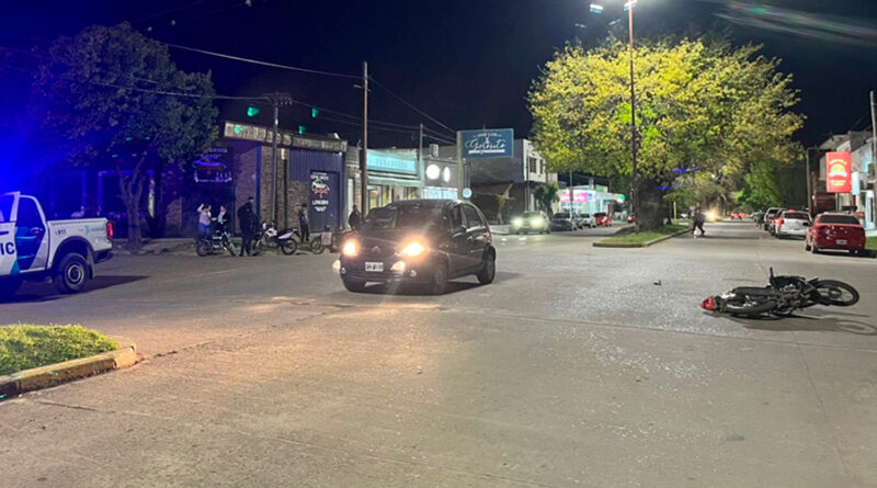 Joven herido tras un choque entre auto y moto en 3 de Febrero y Chivilcoy