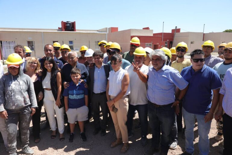 La agenda continuó en el sector donde avanza la construcción de 55 viviendas, con ingreso a una de las unidades próxima a finalizar y la visita a una familia que ya habita en el lugar, repasando el estado de avance y la importancia de sostener estas obras para dar respuesta a la demanda habitacional.