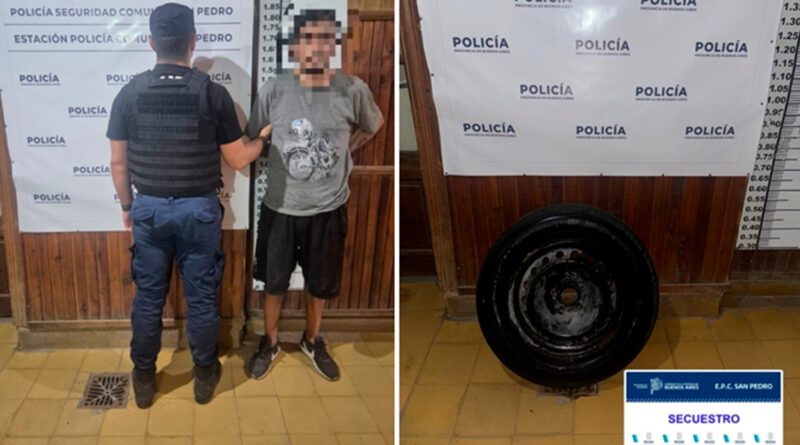 Según se informó, el sujeto fue interceptado cuando egresaba de una vivienda perteneciente a un vecino de 45 años, llevando consigo una rueda marca Pirelli Scorpion Verde 215/65 R16 con su respectiva llanta. Al advertir la presencia policial, el masculino emprendió la fuga, abandonando el elemento sustraído, el cual fue secuestrado por los efectivos.