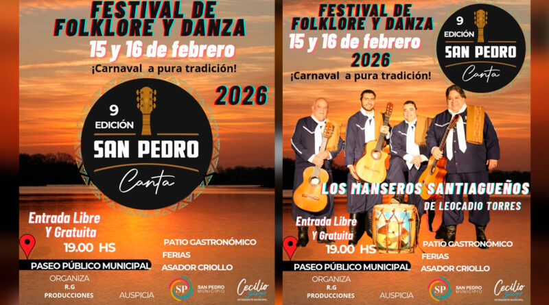 Se viene la 9na. edición del San Pedro Canta 2026: dos noches de folklore, danza y tradición en el Paseo Público