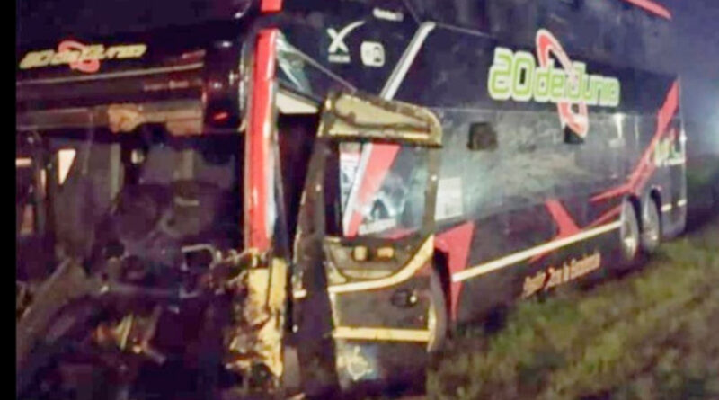 Un colectivo Volvo de la empresa 20 de Junio, que circulaba por el km 221 de la Ruta 9 rumbo