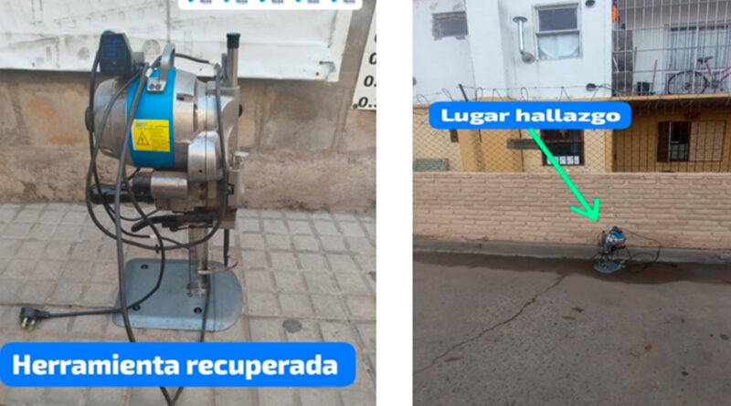 En la mañana de ayer, personal policial que realizaba recorridas preventivas halló una herramienta eléctrica sustraída en inmediaciones de Ituzaingó y Nieto de Torres, en el interior del Barrio Fonavi.