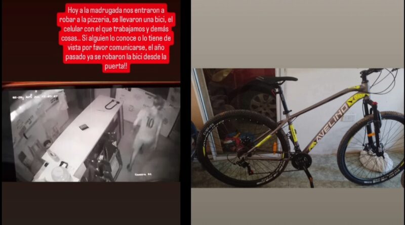 Un delincuente ingresó durante la madrugada a la pizzería «La Ñata», ubicada en la intersección de Alvear y Belgrano, en San Pedro. Según quedó registrado en las cámaras de seguridad del comercio, el ladrón accedió al local a través de una ventana y sustrajo una bicicleta, un celular y fiambres.