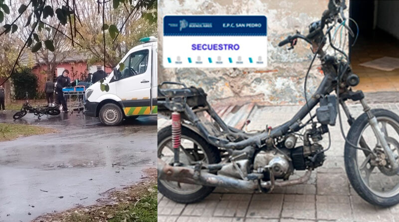 Tal como era informado el lunes, se produjo un choque en la intersección de Brenan y Benefactora Sampedrina, tras un llamado al 911 que alertaba sobre un accidente de tránsito. En el lugar, se constató una colisión entre una motocicleta 110 cc, conducida por un adolescente de 14 años, y una camioneta Peugeot, manejada por un hombre de 33 años. A raíz del impacto, el menor resultó lesionado y fue trasladado por una unidad del SAME 107 al Hospital Local, donde fue asistido por lesiones a determinar. La UFI N°11 de San Pedro tomó intervención inicial en el caso.