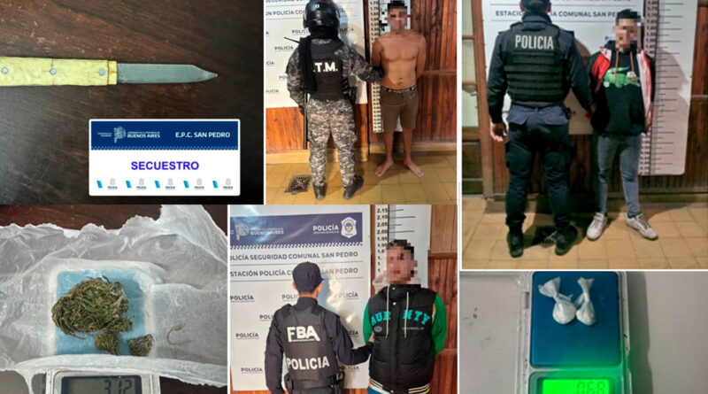 En el marco de distintos procedimientos realizados en la ciudad, personal policial concretó tres aprehensiones por diferentes infracciones, incluyendo portación de arma blanca y tenencia de estupefacientes.