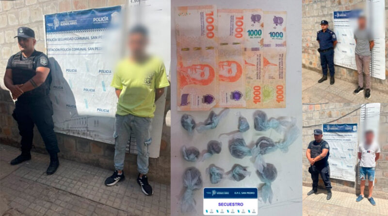 En una serie de operativos realizados ayer en distintas zonas de San Pedro, personal policial detuvo a tres personas en posesión de sustancias ilícitas, en el marco de la infracción a la Ley 23.737. El primero de los procedimientos tuvo lugar en la intersección de Bvar. Moreno y Mateo Sbert, donde un joven de 22 años fue aprehendido con 14,8 gramos de marihuana distribuidos en 12 envoltorios, junto con una suma de dinero en efectivo. El detenido permanece alojado en la dependencia local y se encuentra a disposición de la fiscalía.