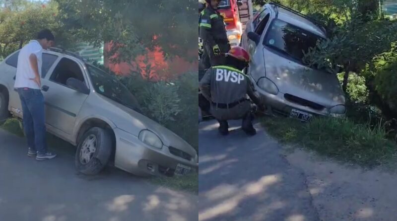 Un auto quedó a punto de caer a un zanjón y bomberos rescataron a sus ocupantes