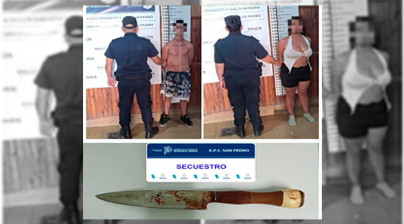 Asimismo, se procedió a la aprehensión de un hombre de 22 años quien, al advertir la presencia policial, intentó darse a la fuga portando un arma blanca, siendo sindicado como otro de los agresores. La víctima fue trasladada a la Comisaría de la Mujer y la Familia para su asistencia y resguardo, mientras que ambos imputados fueron llevados a la dependencia policial, imputados por el delito de lesiones leves y amenazas, quedando a disposición de la UFI N° 11 de San Pedro, en turno.
