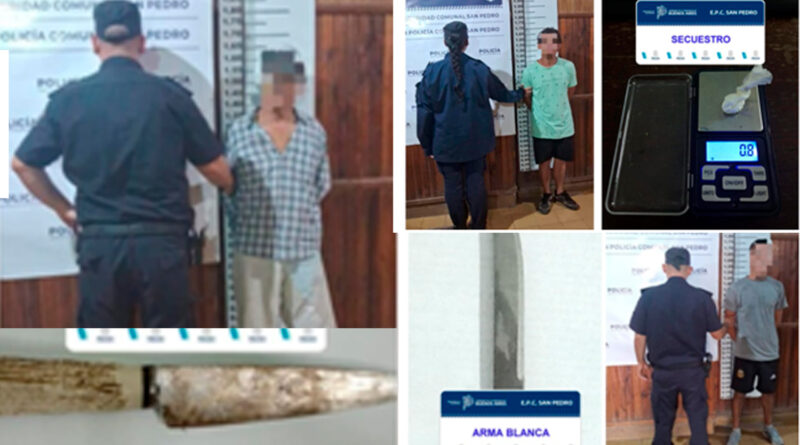 Tres hechos policiales registrados ayer en distintos sectores de la ciudad derivaron en aprehensiones y formación de causas por alteración del orden, amenazas agravadas y tenencia de estupefacientes. Durante la mañana, en una recorrida de rutina, personal policial detuvo en Sargento Selada y Cucit a un joven de 24 años que se encontraba alterando el orden público y portando un arma blanca. Tras su traslado a la dependencia y la notificación de la causa, recuperó la libertad por disposición del Juzgado de Paz local.