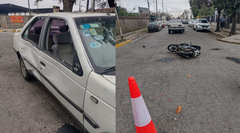 Una moto impactó con un auto y su conductora sufrió una fractura en el codo