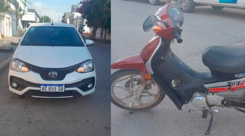 En horas de la tarde de ayer, por causas que se tratan de establecer, se produjo un accidente de tránsito en la intersección de Mitre y Libertad, donde colisionaron un automóvil Toyota Etios y una motocicleta.