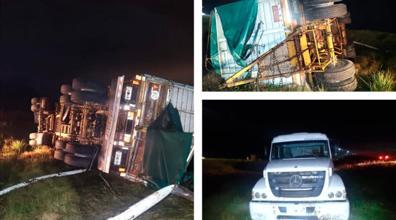Durante la madrugada de este sábado, un camión volcó en la Ruta Nacional 9, a la altura del cruce con la Ruta 51, en jurisdicción de Ramallo. El siniestro involucró a un Mercedes Benz modelo EHO 685 con acoplado, que circulaba en dirección no precisada.