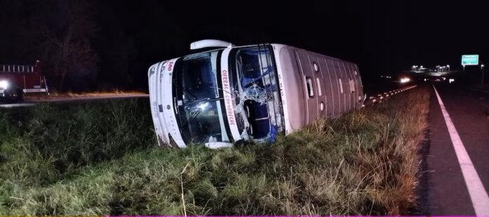 El hecho ocurrió alrededor de las 5 de la mañana, sin intervención de terceros. Según confirmaron desde Bomberos Voluntarios de Capitán Sarmiento, el colectivo perdió el control y volcó por sus propios medios, para terminar sobre la banquina central que divide ambas manos de la ruta.