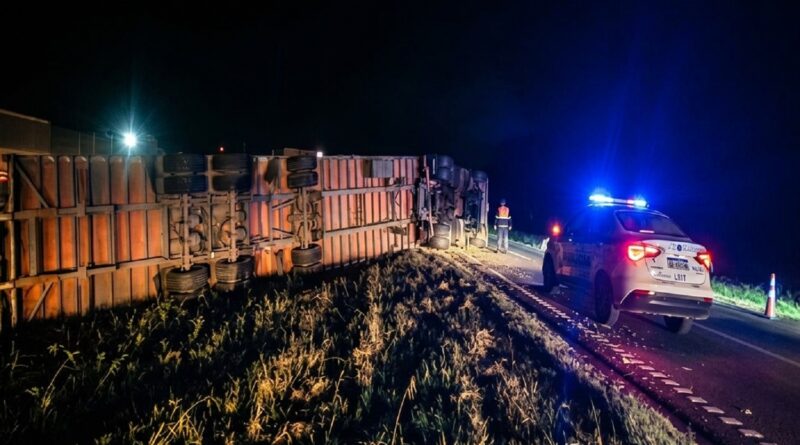 Durante la madrugada, se registró un despiste y vuelco de un camión sobre la Ruta Nacional 9, a la altura del kilómetro 205, en sentido Buenos Aires–Rosario.